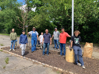 Woodlawn Chapter members helped clean up litter and debris around a building and parking lot and laid down mulch in landscaped areas. This effort enhanced the visual appeal of the site, improved safety, and contributed to a more positive environment for the community.